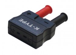 This adapter converts any Type-K thermocouple temperature probe with a mini-connector to dual shrouded banana plug inputs.