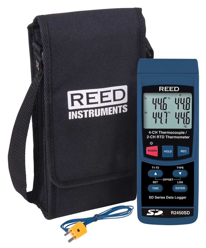 A temperature data logger is great for recording temperatures over a period of time. The R2450SD features an easy-to-read backlit LCD display, keypad with data hold and Max/Min functions and the ability to record up to 4 separate temperature measurements simultaneously.