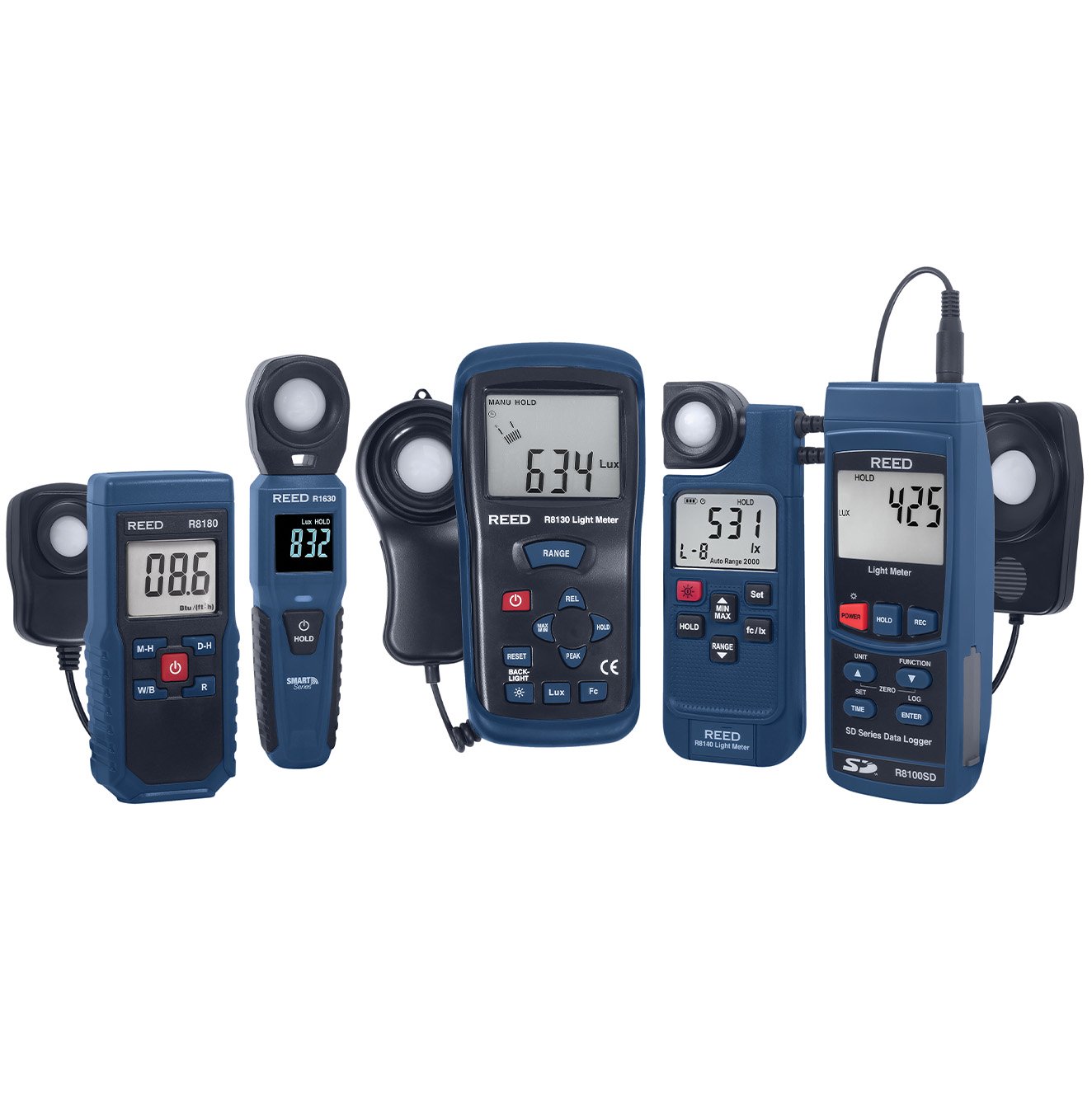 REED Instruments offre une vaste sélection de luxmètres. Les luxmètres REED sont utilisés tous les jours dans différentes applications incluant: s'assurer que les environnements de travail répondent aux normes de l'OHSA, déterminer les niveaux d'éclairage optimaux pour les scènes de films ou de photographie et pendant le processus de vérification de nouvelles installations de système d'éclairage pour les projets de construction. Que vous recherchiez un compteur compact pour les applications de mesure d'éclairage ou que vous ayez besoin d'un système de surveillance continu à long terme, REED Instruments a le luxmètre dont vous avez besoin.